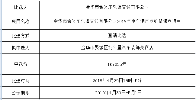金華市公交集團有限公司及下屬子公司2025-2026年度輪胎供應項目結果公告