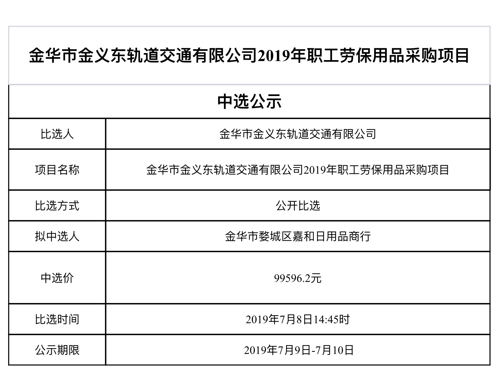 金華市軌道交通控股集團(tuán)物業(yè)管理服務(wù)有限公司2025-2026年保潔用品采購項(xiàng)目的中標(biāo)候選人公示