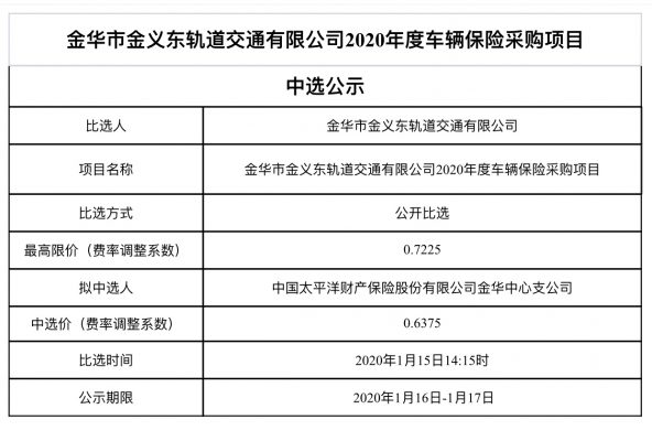 中選公示(車輛保險)